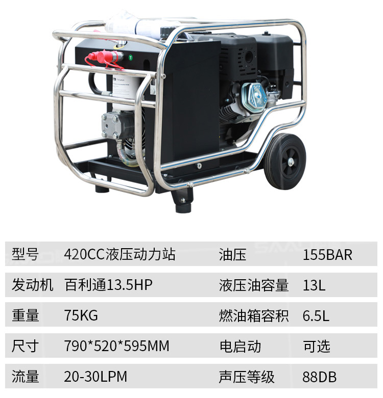 液压动力站采用先进的技术,可提供汽油或柴油风冷式内燃发动机,燃烧效率高,重量轻,坚固耐用,使用寿命长,且不用担心发动机过载。